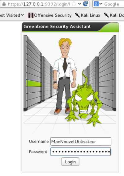 root@kali:~# openvasmd --create-user MonNouvelUtilisateur